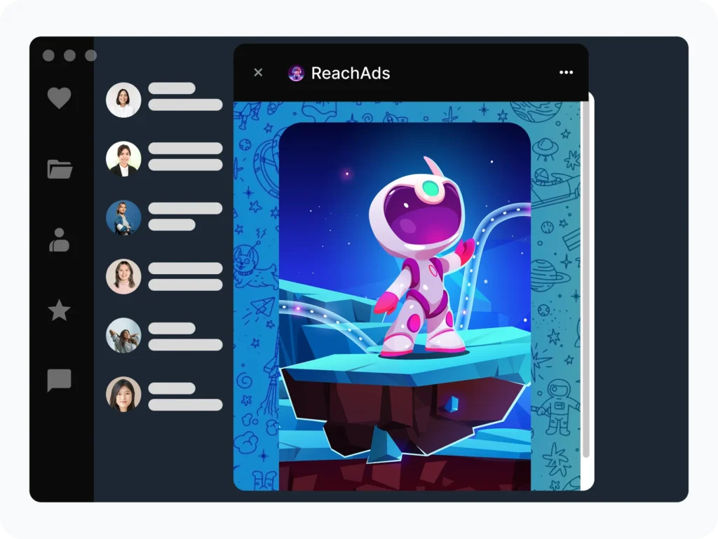 Leverage ad formats native to the Telegram ecosystem to increase the audience of your Telegram mini app or channel.