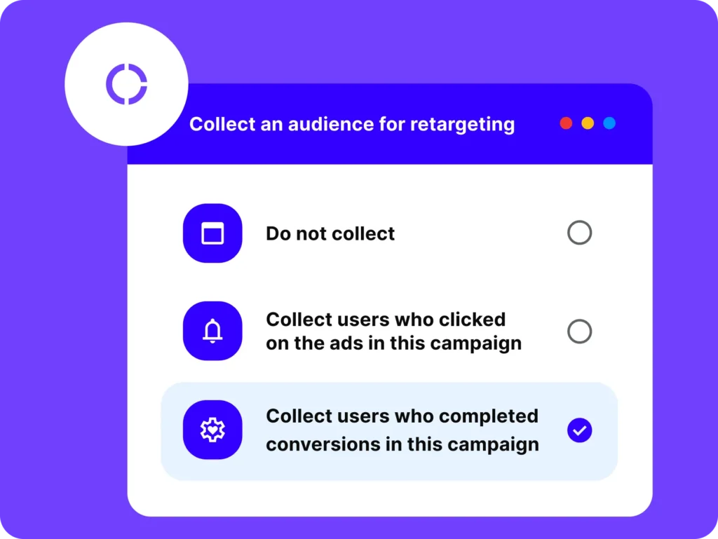 • Leverage retargeting option to repeatedly engage users who viewed, clicked your ads, or converted