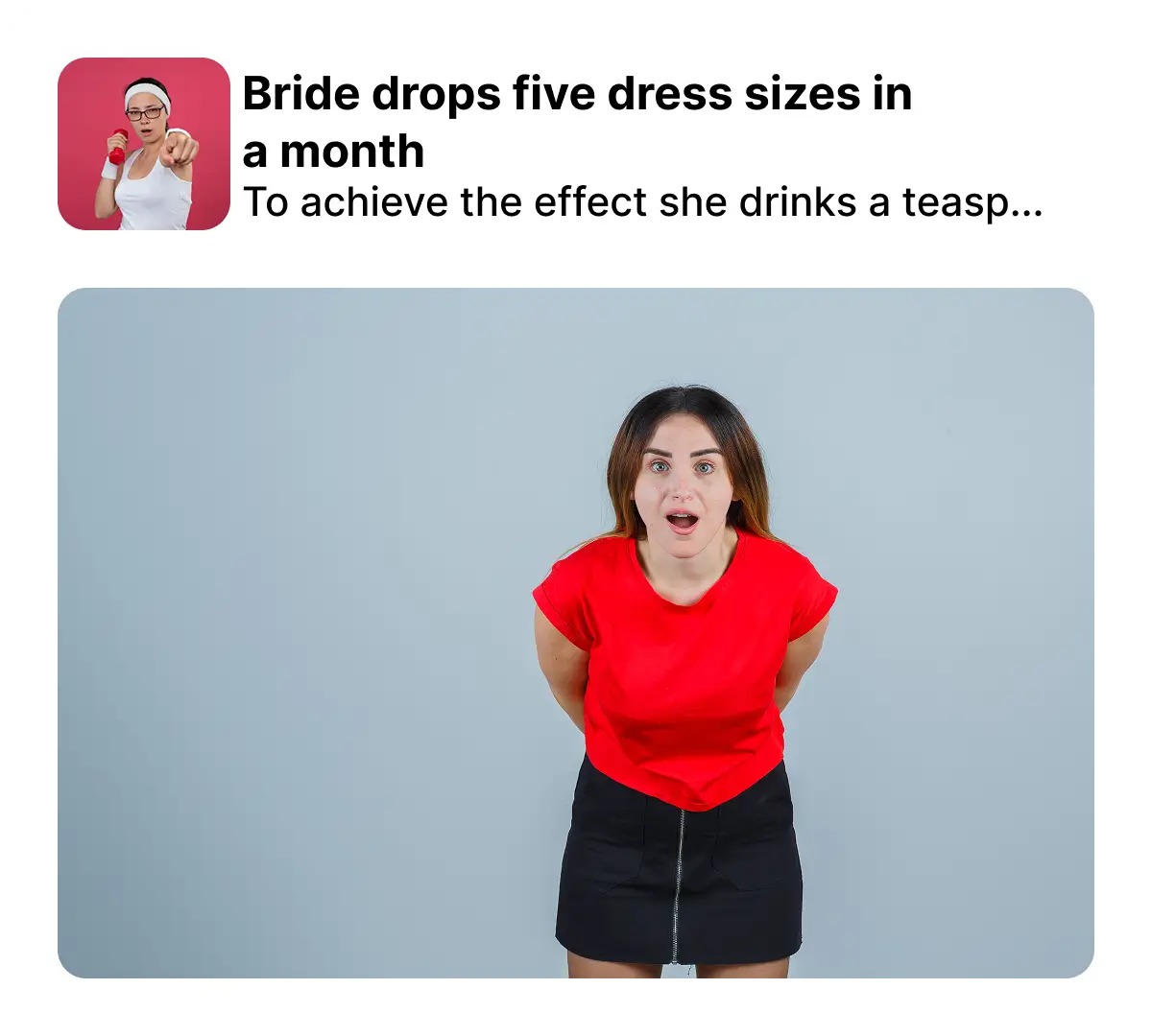 a story about the weight loss of an ordinary woman by following the link. Then describe her steps to becoming slimmer on the pre-landing page. Finally, put a button that leads to the product page at the end of the text for the user to follow it when he’s already warmed up.